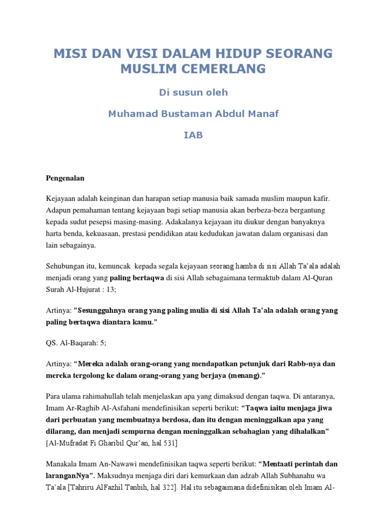 Misi Dan Visi Hidup Seorang Muslim Cemerlang Pdf