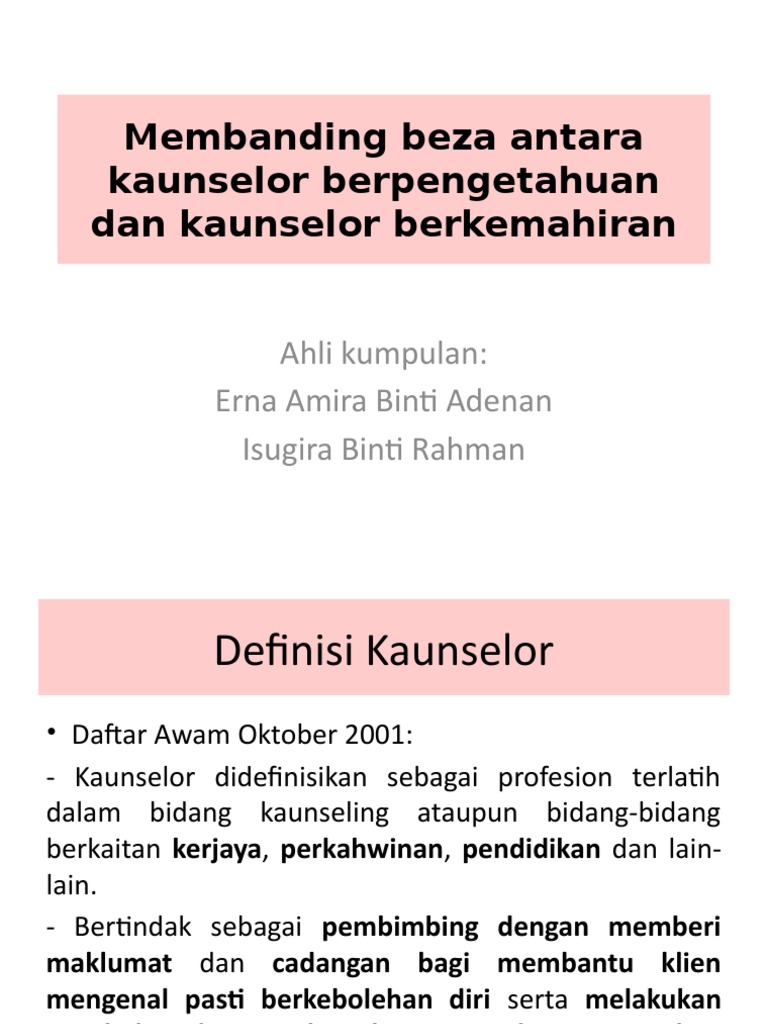 Membanding Beza Antara Kaunselor Berpengetahuan Dan Kaunselor Berkemahiran Pdf